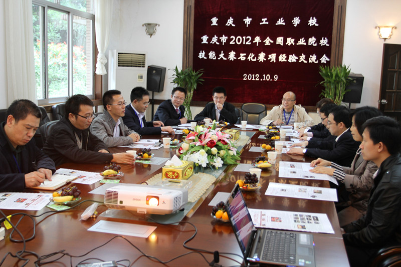 ――我校举办重庆市2012全国职业院校石化赛项(中职)经验交流会 金秋十月,丹桂飘香。2012年10月9日下午,重庆市2012年全国职业院校技能大赛石化赛项(中职)经验交流会在我校举行。重庆市中职竞赛办石化项目负责人周永平、重庆市工业学校副校长陈玉明、重庆仪表工业学校副校长徐涛、重庆市工业学校教务科科长兼竞赛办主任廖权昌、人事科科长胡志林、化学工业科副科长陈仲祥以及两个参赛学校的赛项指导教师参加了交流会。 会议由重庆市中职竞赛办石化项目负责人周永平主持,他介绍了本次会议目的、意义及内容。陈玉明副校长首先代表学校欢迎参会的各位兄弟学校同仁,并介绍了我校今年组织参赛的情况,他希望大家通过今天交流活动,分析存在的问题与不足,为今后参赛取得更好的成绩积累宝贵经验。他还与大家分享了不久前参加全国化工职业教育高峰论坛得体会。随后,各赛项的指导教师依次就各自指导、参赛的情况及切身感受,彼此交流。在轻松愉悦的气氛中大家畅所欲言,各抒己见,既分享成功的喜悦,也直面存在问题,寻找不足与差距。 石油化工赛项是今年全国职业院校技能大赛新增比赛项目,共设有“化工仪表自动化”、“化工仪表维修”、“化工生产技术”、“工业分析检验”等四个团体赛项。今年我市第一次组织院校参赛,就取得不俗成绩。其中我校代表重庆市参加了“化工仪表维修”、“化工生产技术”、“工业分析检验”等三个赛项比赛,取得两块银牌两块铜牌的好成绩。重庆仪表工业学校参加了“化工仪表自动化”赛项的比赛,也取得一块铜牌。成绩的背后,是上级的高度重视,学校的亲切关怀,老师们的精心指导和辛勤付出。 通过这次交流活动,既总结分析了存在的问题与不足,找到了解决的办法和途径,更为今后的参赛总结积累了宝贵的经验。