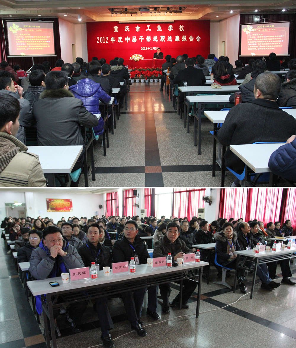 1月5日下午,我校在多功能厅召开了2012年度中层干部述职述廉报告会,学校党政领导及全体教职工听取了26名中层干部的述职述廉报告。会议由党委书记、副校长曹林主持。 会上,每位中层干部对自己去年工作中取得的成绩、不足进行了认真总结,并提出了今年工作的筹划和今后努力的方向。 曹林书记对本次大会进行了简要总结,并希望全体中层干部通过述职相互交流、启发、相互借鉴,促进大家更好的谋划工作思路,创新工作举措。希望在新的一年里,全体中层干部加强政治理论学习,提高业务工作水平,提升执行力、创新力,增强廉政建设的自律意识,开拓部门工作新局面,为2013年学校的建设与发展做出更大的贡献。 学校每年度召开的中层干部述职述廉报告会,是建立健全聘任考核长效机制的重要步骤和举措,也是抓好学校内涵建设、提升学校中层干部队伍的执行力、创造力,打造高素质的管理队伍,促进学校干部队伍建设具有重要意义。