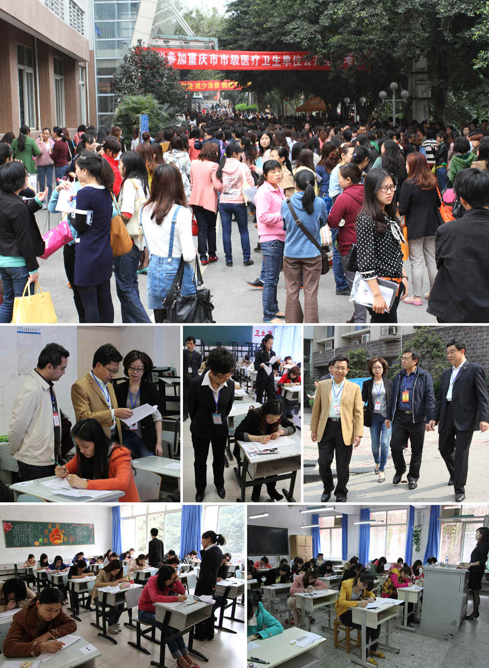 2013年重庆市医疗卫生事业单位公招考试于3月17日在我校顺利举行,此次公招考试规模大,在我校设置了100个考室,有3000余人在我校参考。 为顺利推进公招考试工作,保证为考生提供良好的考试环境,学校领导高度重视,成立了以培训部和教务科为牵头部门的考务工作领导小组,准备并组织本次市卫生局公招考试工作。并在3月15日下午,在学校多功能厅召开了全体考务人员和监考人员参加的考前培训会,重庆市卫生局考试中心杨部长、我校培训部及教务科负责人部署了考务工作及监考安排,并强调了此次考试的重要性,要求大家提高认识,认真负责地完成本次公招考试工作。 3月17日下午2:30,市卫生局公招考试如期在我校进行。学校校长、党委副书记杜宏伟,党委书记、副校长曹林,副校长李经祥、陈玉明,培训部主任廖权昌,教务科科长侯萍分赴各考场,对各项考试工作进行了巡查,市卫生局傅局长、谢处长及考试中心主任等各位领导莅临现场指导工作,并肯定了我校的组织工作。在大家的共同努力下,市卫生局2013年公招考试在我校圆满完成。