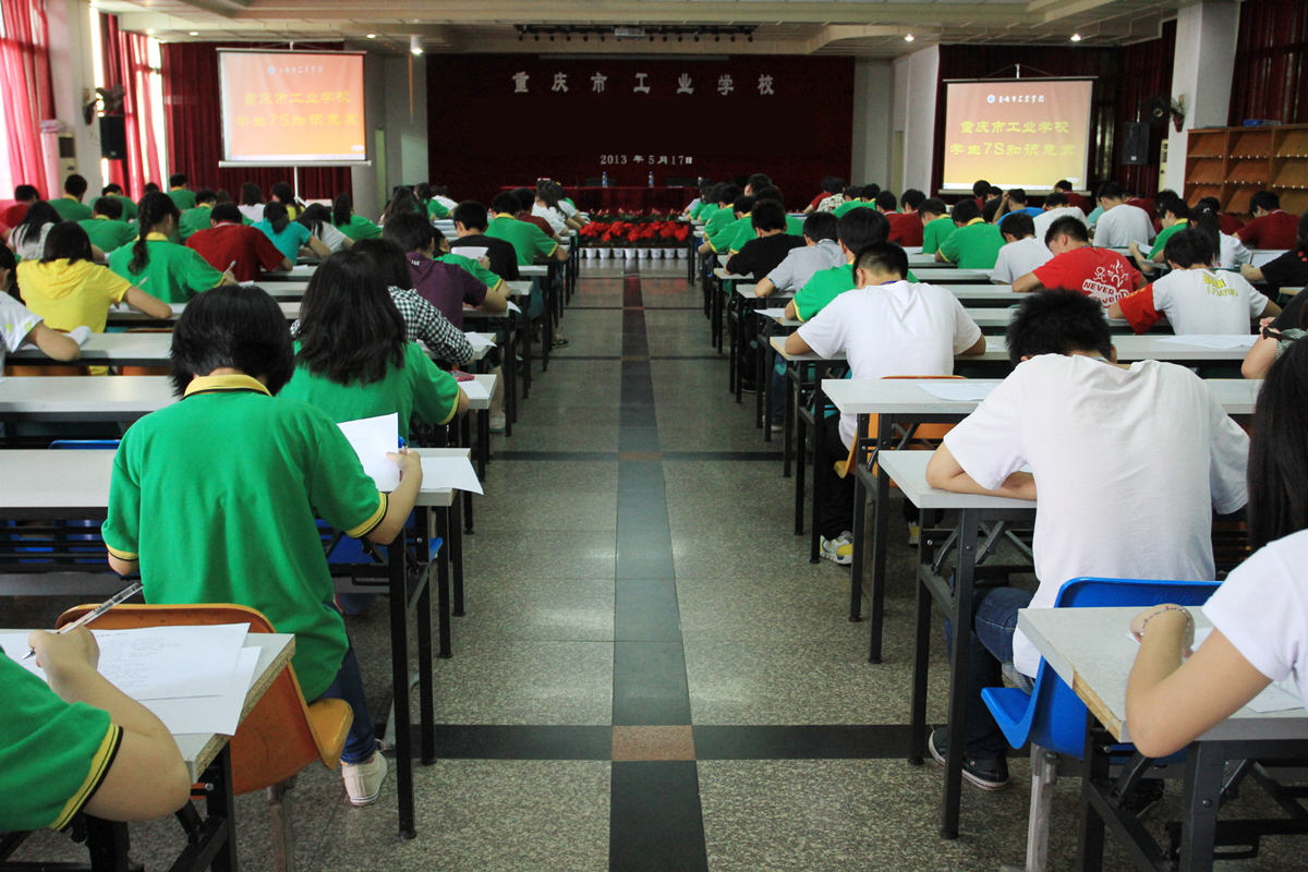 为扎实推进我校7S主题实践活动的深入开展,进一步掀起学生学习7S的热潮,使之入脑入心,2013年5月21日下午4点30分,学校7S活动领导小组在多功能厅成功举办了深入学习实践7S知识竞赛活动。 此次知识竞赛得到了学校学习实践7S主题活动领导小组的高度重视,学校党委委员、副校长李经祥现场指导工作,介绍了竞赛的重要性,强调了考场的纪律要求。同时,本次知识竞赛也得到了各专业科的大力支持,在各位德育组长的大力宣传和精心组织下,学校12级各中专班积极参与、踊跃报名,在自主选拔的基础上,共有45个班级、100余名同学报名参加了本次竞赛。竞赛活动内容以《重庆市工业学校深入学习7S学生小手册》学习资料为主,全程在各专业科德育组长的严格监考下进行了一场严肃、认真、公正的考试。整个比赛过程中,参赛选手认真读题审题,沉着冷静思考,在大家的努力下,共同确保竞赛活动取得了圆满成功。 举办7S知识竞赛,是开展学习实践7S主题活动的一项重要举措,是检验第一阶段学习成效的一项重要工作,对于推进学习实践7S主题活动的进一步全面、深入开展具有十分深远的意义。
