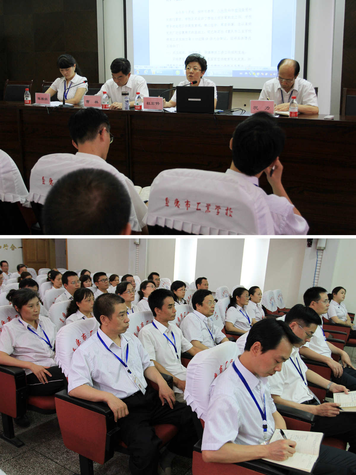 ――我校教代会讨论通过绩效工资改革方案 2013年6月18日下午,我校在世纪楼三楼报告厅召开了重庆市工业学校第七届十三次教职工代表大会。会议在雄壮的国歌声中开始,党委副书记、纪委书记、工会主席况力主持会议,全体校干和教职工代表参加了会议。 校长、党委副书记杜宏伟发表了讲话,作了关于《重庆市工业学校绩效工资实施方案(试行)》和关于《重庆市工业学校2010年、2011年绩效工资补发方案》的说明,她指出,在整体测算、前期摸底的基础上,经过2个多月,在5月形成初步方案,并多次召开办公会、中干会进行讨论,把初步方案发给各个部门进行讨论,并与6月3日向全校教职工进行了解答,绩效工资遵照事业单位改革相关制度,奖勤罚懒,希望全校教职工改进观念,发挥正能量,完善岗位管理工作与绩效考核工作。 参会的教职工代表们经过认真讨论,审议并民主表决通过了《重庆市工业学校绩效工资实施方案(试行)》和《重庆市工业学校2010年、2011年绩效工资补发方案》。 会上,党委书记、副校长曹林发表了讲话,他谈到一是绩效工资是国家推进事业单位人事分配制度改革的重大举措,希望大家统一思想,把握大局,充分理解,爱岗敬业,积极主动的完成各项工作;二是此次方案将在实施执行的过程中不断完善,推进学校更好更快发展。 最后,主持人况力主席号召教职工代表们抓紧招生工作,为绩效工资的发放提供保障,为学校的发展作出应有的贡献。