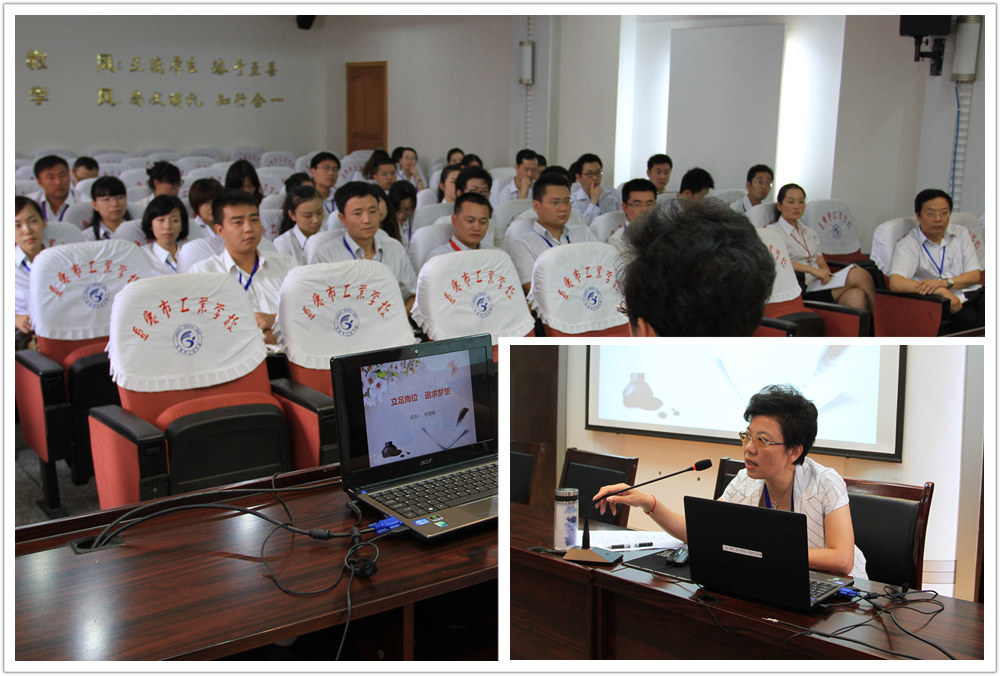 ――青年教师职业道德与素养专题讲座 近年来,随着我校的扩招,中青年教师的比重越来越大,广大青年教师思维敏捷、精力充沛、思想解放、勇于创新,为学校的改革发展注入了生机和活力,但不可否认有的青年教师在教学、科研等实践过程中,还存在诸多有悖于教师职业道德规范的现象。因此,2013年8月13日上午,我校校长杜宏伟在世纪楼三楼学术报告厅针对35岁以下青年教师进行了教师职业道德与素养专题讲座。全校有52名专兼职青年教师参加了此次会议。会议由教研督导室主任邱国声主持。 杜校长以“立足岗位 追求梦想”为主题,通过自己的成长经历告诉我们青年教师要充分了解学校特性,明确工作目标,掌握工作方法,迅速转变角色,促进个人成长。杜校长强调,我们应明确几个概念:一、明确学校、职业学校、中等职业学校的概念。学校是传授知识与技能,传播文化的场所。二、明确教师、教育工作者、教育家的概念。教师的职责是传道、授业、解惑;对教师的要求是学高为师、身正为范。三、明确职业教育的含义。职业教育是学校在对学生进行高中层次文化知识教育的同时,根据职业岗位的要求实施职业道德教育、职业知识教育和职业技能训练,培养与我国社会主义现代化建设要求相适应,具有综合职业能力,在生产、管理、服务一线工作的高素质劳动者和技能型 人才。解决几个问题:1、你为什么选择教师这个职业?2、你对所从事的职业自我设定的职业标准是什么?3、你对你当前的工作状态和成效作何种评价?你的工作目标是什么?你有成就感吗?4、工业学校是不是你理想中的学校?你充分了解学校的管理制度吗?学校目前在教育教学的工作中存在的不良现象,在你的工作中是否存在?5、你觉得目前学校的哪些制度对你们有激励效应?你对学校或者领导的期盼有那些? 会议最后,杜校长作了以下五点要求:1、完善自我---从职业道德、职业修养、职业能力等方面修炼自己、锻炼自己,全面发展自己。2、志存高远---有理想、有抱负、有作为。有为才有位。3、学会服从---服从本身就是一种能力,是一种更强的适应力。一个人只有服从于社会、服从于组织、服从于制度,才能融入集体、融入环境、融入社会。4、自信而不自负---对事物充满热情、充满自信,不自以为是、盲目自负。5、将张扬的个性用于工作的创新。 杜校长对青年教师提出了新的概念和新的要求,要想成为一名优秀的教师,就应该从点滴的工作开始。在这个职业生涯里,没有其他的捷径可走。只有立足岗位,才能追逐梦想。