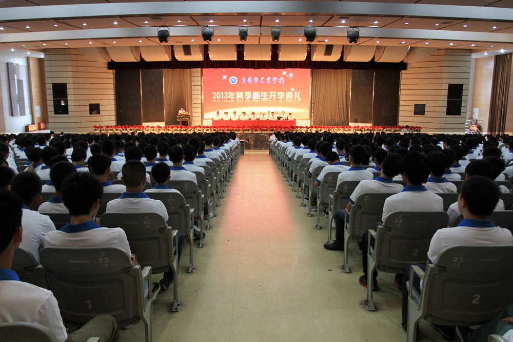 ――我校召开2013―2014学年第一学期新生开学典礼 2013年8月24日上午9时,重庆市工业学校2013级秋季新生开学典礼在校大礼堂举行。全体校干、中干、2013级班主任和全体2013级秋季新生参加了典礼。大会由党委书记、副校长曹林主持。 在气势恢宏的国歌声落幕后,校长、党委副书记杜宏伟在典礼上发表了讲话。她首先代表全校师生员工向参加开学典礼的新同学们表示热烈的祝贺和欢迎,并向新同学们大致介绍了学校的基本情况和办学特色,希望他们倍加珍惜青春时光,发挥正能量,能心有梦想,志存高远,脚踏实地,倾力投入,努力提升自身素质。并衷心祝福在座的每一位男同学都能成为“高在学识、富在技能、帅在人品”的“高富帅”,女同学都能成为“甜在性格、外形素雅、内心纯洁”的 “甜素纯”,不畏艰难,激流勇进,去开拓更加美好灿烂的明天。 随后,新老学生代表分别做了激情洋溢的发言,他们表示,将在学校这个温馨的大集体中,遵守学校纪律,踏实认真学习做一个文明、高尚、富有教养的高素质技能人才,以优异的成绩回报社会。曹林书记做了总结发言,他希望新同学们能够在重庆工业学校这所有着悠久的历史沉淀和浓厚的技能氛围的学校里,在新的征途上严格要求自我,学做事学做人,积极进取、勇于创新,做尚文明礼,德智体美劳全面发展的中职学生,并祝愿同学们学有所成。 最后,学生科组织安排了近期工作和新生军训事宜。开学典礼在同学们激情洋溢的掌声中落下帷幕,圆满结束。