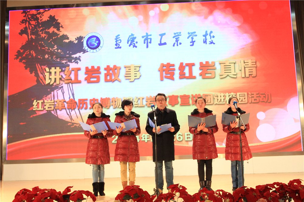――记红岩革命历史博物馆红岩故事宣讲团进校园活动 红岩,一部承载着无数革命烈士对共产主义信念执着追求的革命著作;红岩精神,一种革命先辈为国家为人民无私奉献的精神力量。著名的红岩革命历史博物馆就坐落在我校隔壁,作为重庆红色教育基地,我校利用得天独厚的地理优势与红岩博物馆展开了多方连线,将红岩精神融入学校教育,先后开办了周恩来班、红岩德育提高班,建立了红岩之光合唱团、红岩之光足球队等。 2014年2月27日,红岩革命历史博物馆举办的红岩故事宣讲进校园活动一行来到我校,在我校大礼堂为我校13级一千余名师生举办了一场别开生面的红岩革命历史故事宣讲活动。解说员以小故事的形式分别给我们讲述了周总理在红岩村工作的情形、伟大无产阶级革命家董必武先生为六毛钱做检讨的故事、红岩妈妈饶国模的故事等,一则则生动的故事让全体师生再一次领略到革命先辈的那种坚持真理,无私奉献的红岩精神。期间,博物馆工作人员还在学生中举行了有奖竞答活动,向十五名学生送出了红岩革命历史博物馆的限量版纪念品。最后,博物馆一行人员朗诵的毛主席来重庆所作的词――《沁园春・雪》,将全场气氛带入高潮。 通过此次宣讲活动,全体学生对红岩故事有了更多的了解,对红岩精神有了更深层次的理解。同时红岩革命历史博物馆宣讲团一行对我校学生的表现给予了高度评价,宣讲效果尤为突出,他们决定近期还将到我校举行宣讲活动,使全校学生大受鼓舞。