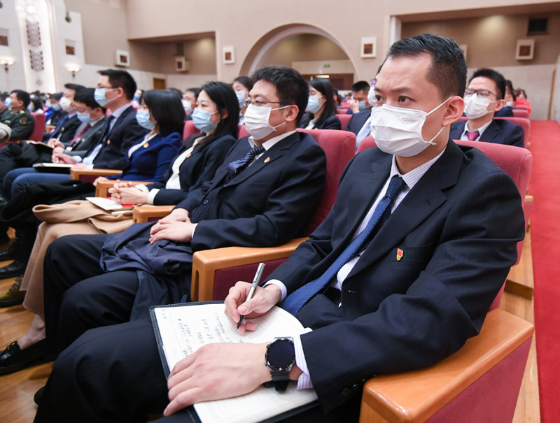 3月16日,参会人员在听报告。新华社记者 陈晔华 摄
