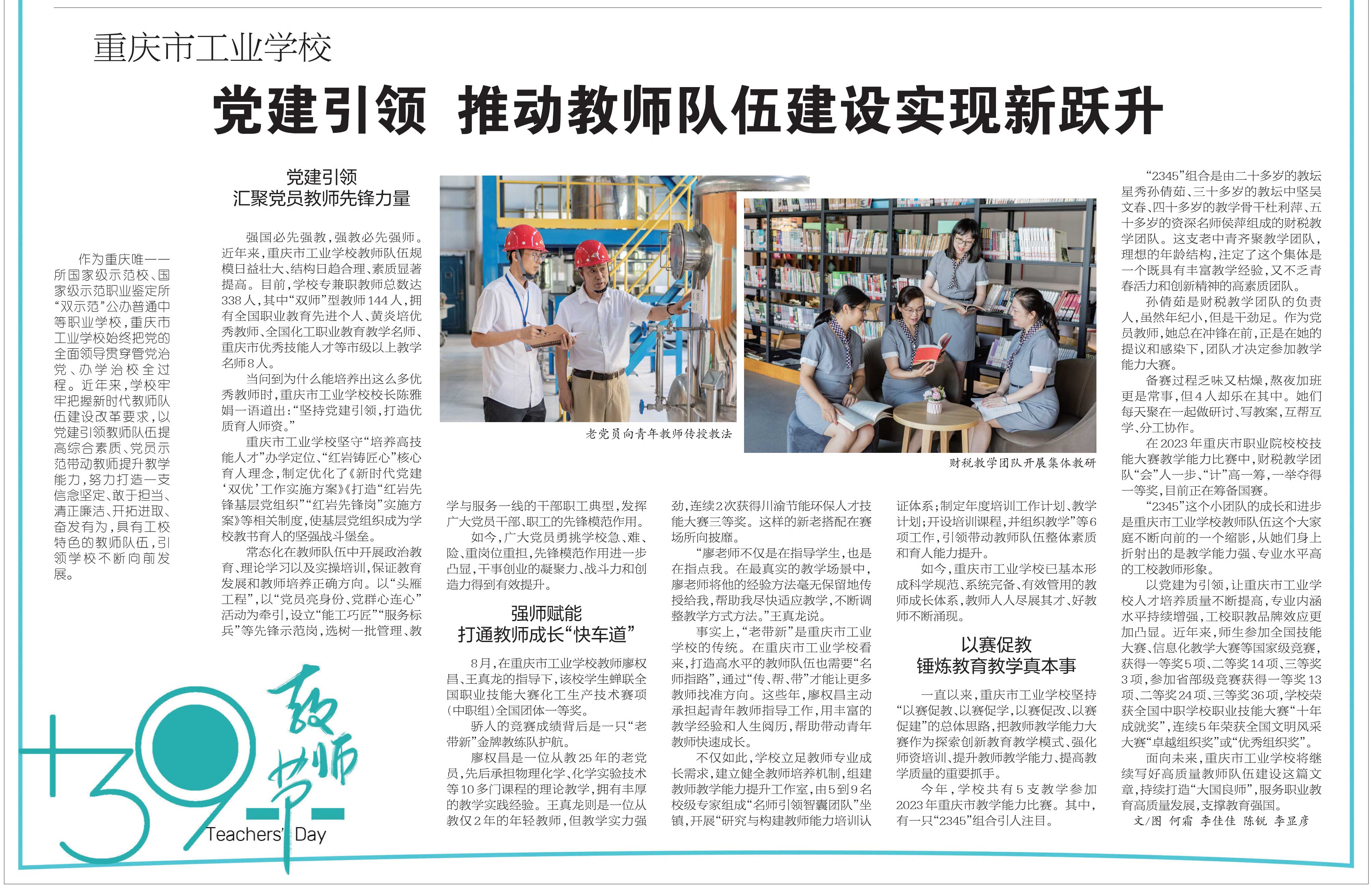 当问到为什么能培养出这么多优秀教师时,重庆市工业学校校长陈雅娟一语道出:“坚持党建引领,打造优质育人师资。”