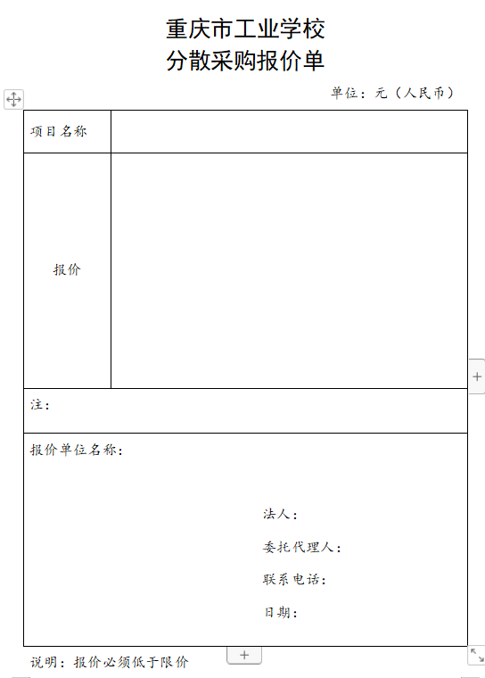 3.本项目仅进行一次报价,价低者为第一顺位中标人,报价不足三家此项目询价作废。