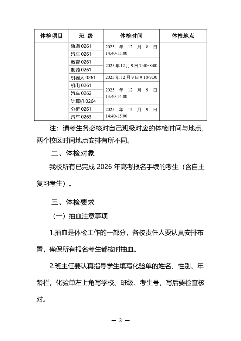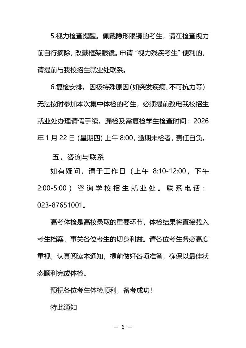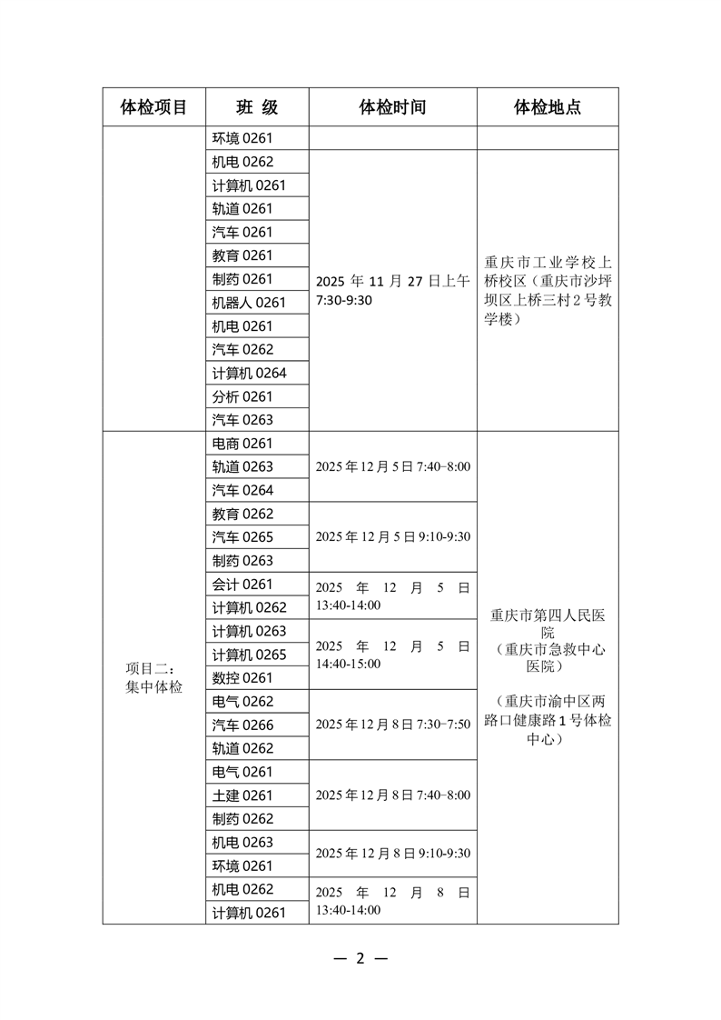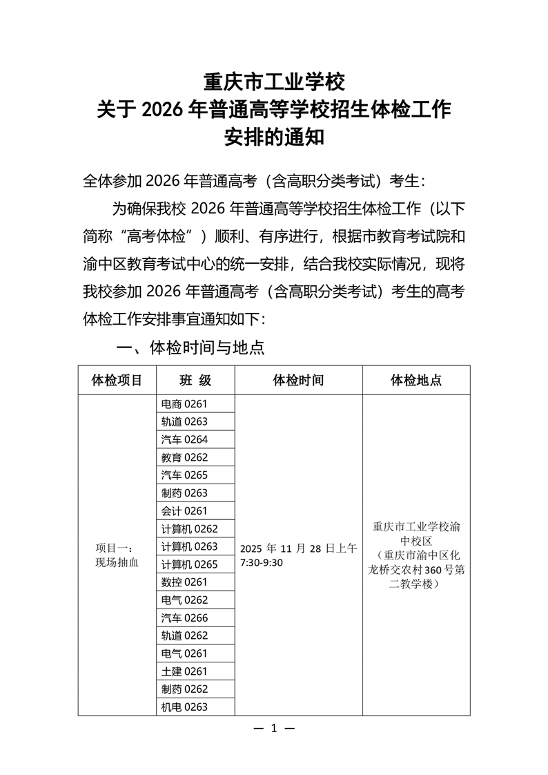 重庆市工业学校关于2026年普通高等学校招生体检工作安排的通知